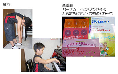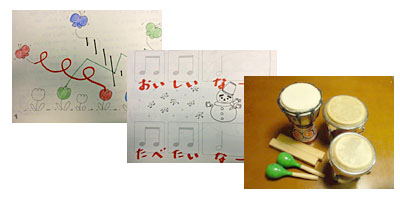 ♪ ピアノレッスンに入る前の大事な時期です。音楽には、リズム・拍子・速さ・高さ・音質などのいろいろな要素があります。それらの音楽要素を感じ取り、表現できるようになるには、耳を傾けて集中できる「心」、そして、聴こえた音に対して即時に判断・反応したり感じたりしたものを表現できる「体」が必要です。ピアノ導入期には、音楽と共に、リズム、言葉、形、色など、身の回りの生活の中から興味ある題材を選んで教材化し、心や体を作っていきます。