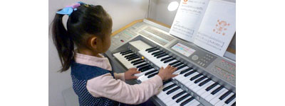小さい生徒さんには、ピアノとエレクトーンを取り入れたレッスンが効果的です。