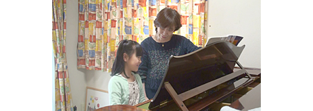 ピアノ演奏技術の修得とともに、伴奏付けやリズム打ち、アンサンブル(連弾)、読譜など、総合的な音楽の基礎能力を身につけられるピアノスタディコースを軸にレッスンを進めます。