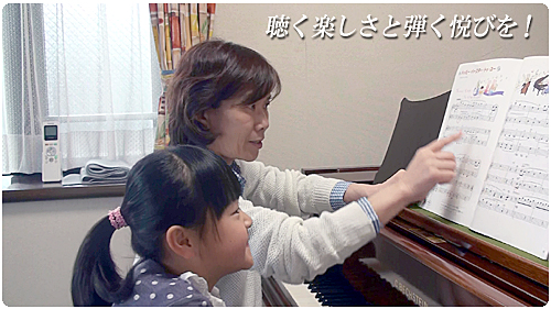 指の運動機能が発達し始める時期を逃さずに、曲を聴きながら真似をして弾く、音で表現することを体得します。