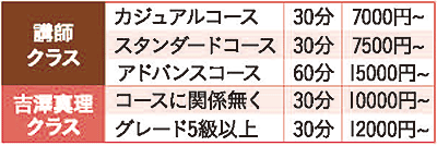 ①生徒さんのニーズに有ったレッスンが選べる事(下記の各コースから自分に合ったコースをお選び下さい)