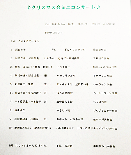| ハッピーバースデー(12月4月5月6月生) X'mas曲 中川ひろたか作曲「にじ」手話お遊戯 モ-ツアルト作曲 「アヴェヴェルムコルプス」合唱 |