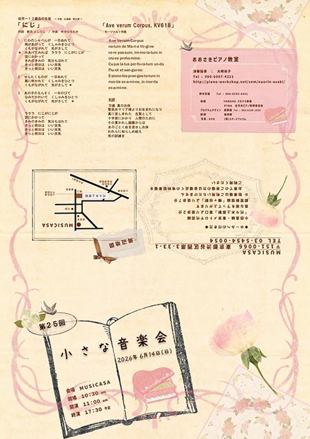 | 内容 | 6/14(日)発表会(小さな音楽会) |