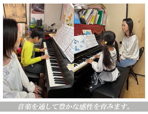 大好きな曲との出会いや感動体験を通してピアノの演奏技術のみならず、忍耐力や集中力など精神面の成長を促します。