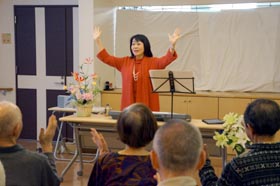 リンゴの唄や知床旅情などの懐かしい歌や、手遊びうたも取り入れて入居されている皆さんと楽しい時間を過ごしました。