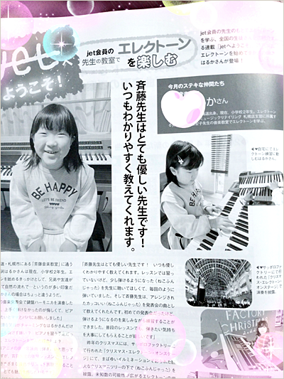 昨年から教室に通い始めた生徒さんが月刊エレクトーン2月号に紹介されました。