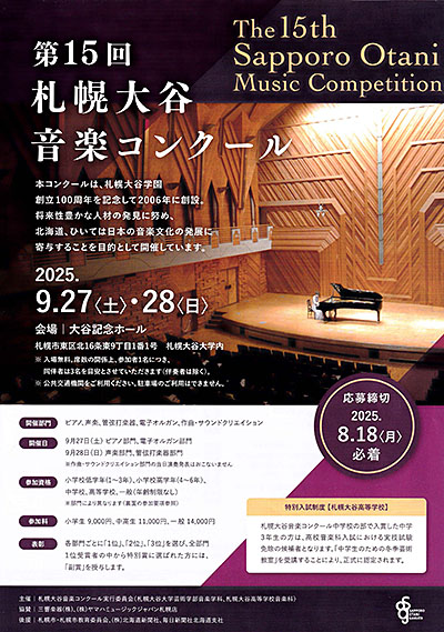 2024年12月に札幌大谷大学記念ホールで行われた音楽科の学生のコンサートの動画が公開されました。