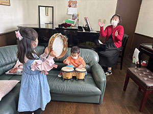 1歳から3歳まで,リトミックを取り入れ,絶対音感を身につけながら,ピアノへ繋げます。ご兄弟やお友達とのグループレッスンも可能です。